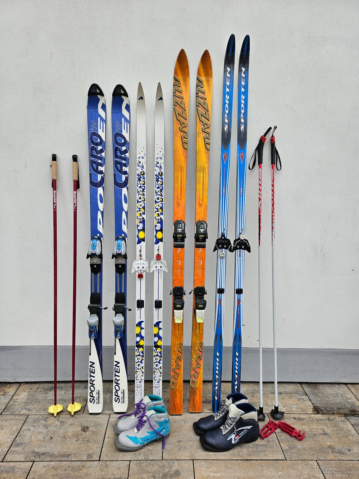 Lyže, běžky, hůlky, boty na běžky - nález z půdy.