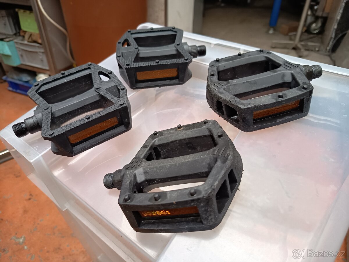 Plastové cyklo šlapátka, na levo nepoužité za 150kč, na pravo použité za 100kč.