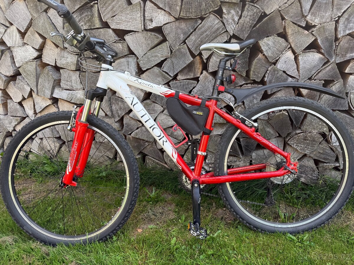 Author Kinetic 19" - [13.2. 2026]Prodám velmi málo jeté horské kolo Author Kinetic o velikosti 19", hliníkový rám 6061 s velmi kvalitní výbavou. Převody 3x8, přehazovačka Shimano Deore, přesmykač Alivio, brzdy Alivio/Tectro, odpružená uzamykatelná vidlice RST, kliky Suntour S3, pláš ...