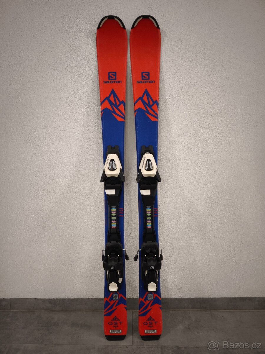 Prodám v dobrém stavu použité lyže Salomon QST MAX JR délky 110 cm s vázáním Salomon posuvném na patě i na špici, velmi jednoduché nastavení, velká škála rozměrů.