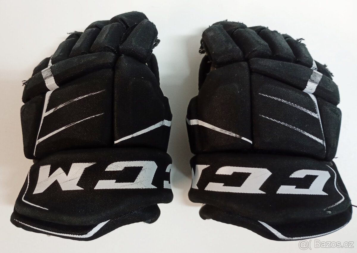 Prodám hokejové rukavice CCM Jetspeed FT350, velikost 10". Rukavice jsou hodně používané a mají výrazné známky opotřebení, ale stále poslouží – ideální na rybník nebo pro začátky s hokejem.