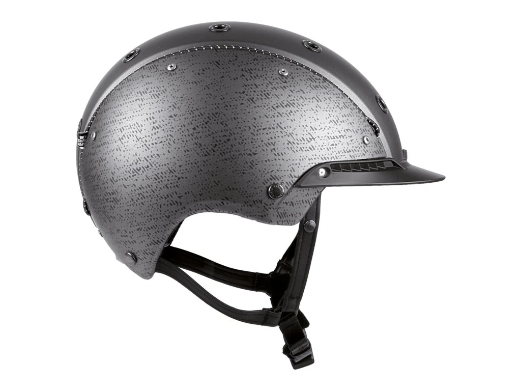 Nová sportovní jezdecká helma značky Casco v krásném elegantním designu. Možnost nastavení obvodu hlavy pomocí systému Disk-Fit Vario kolečka umístěného v zadní části helmy. Helma je lehká, pevná, perfektně odvětraná a se speciálním efektním povrchem. Je vysoce bezpečná díky prodloužení v zadní části, tím zajistí plné zakrytí. Helma má menší tvar a je tím elegantnější. Vnitřní vycpávku lze vyměnit a umýt. Splňuje aktuální normy: EU standard VG1 01.40 2014-12. Lze dokoupit extra dekorativní proužky MyStyle, proužky Swarovski® či zakoupit zimní krytky na uši nebo čistící prostředek na vnější a vnitřní stranu helmy.