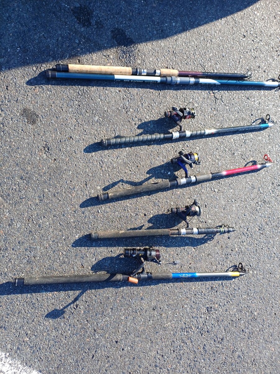 6 rybářských prutů s navijáky