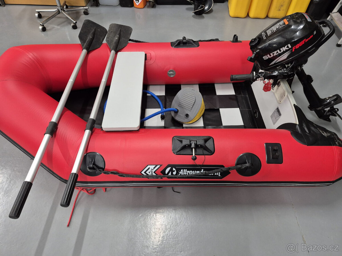Prodám nafukovací člun včetně motoru. Délka 2,3 m. Šířka 1,5 m. Motor Suzuki 2,5hp. Minimálně používaný.