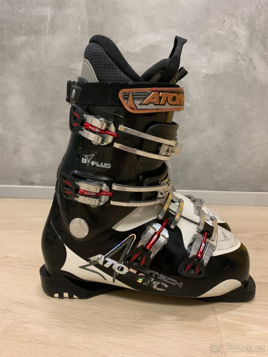 Lyžáky Atomic 25,5 - [25.3. 2026]Prodám dámské lyžáky zn. Atomic 25,5.Délka stélky 25,5.Délka venkovní boty 296mm. Lyžáky mají 4x přesky s mikro štelováním a utahovací pásek na suchý zip. Lyžáky jsou zachovalé.
