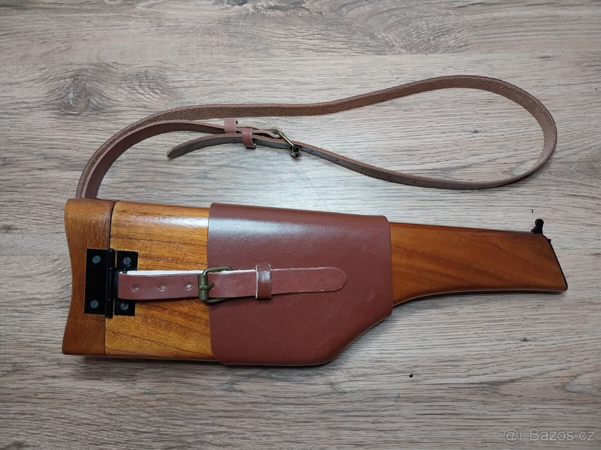 Prodám velmi zdařilou a zcela funkční repliku/pažbu na Mauser C96. Kombinace dřevo a pravá kůže.