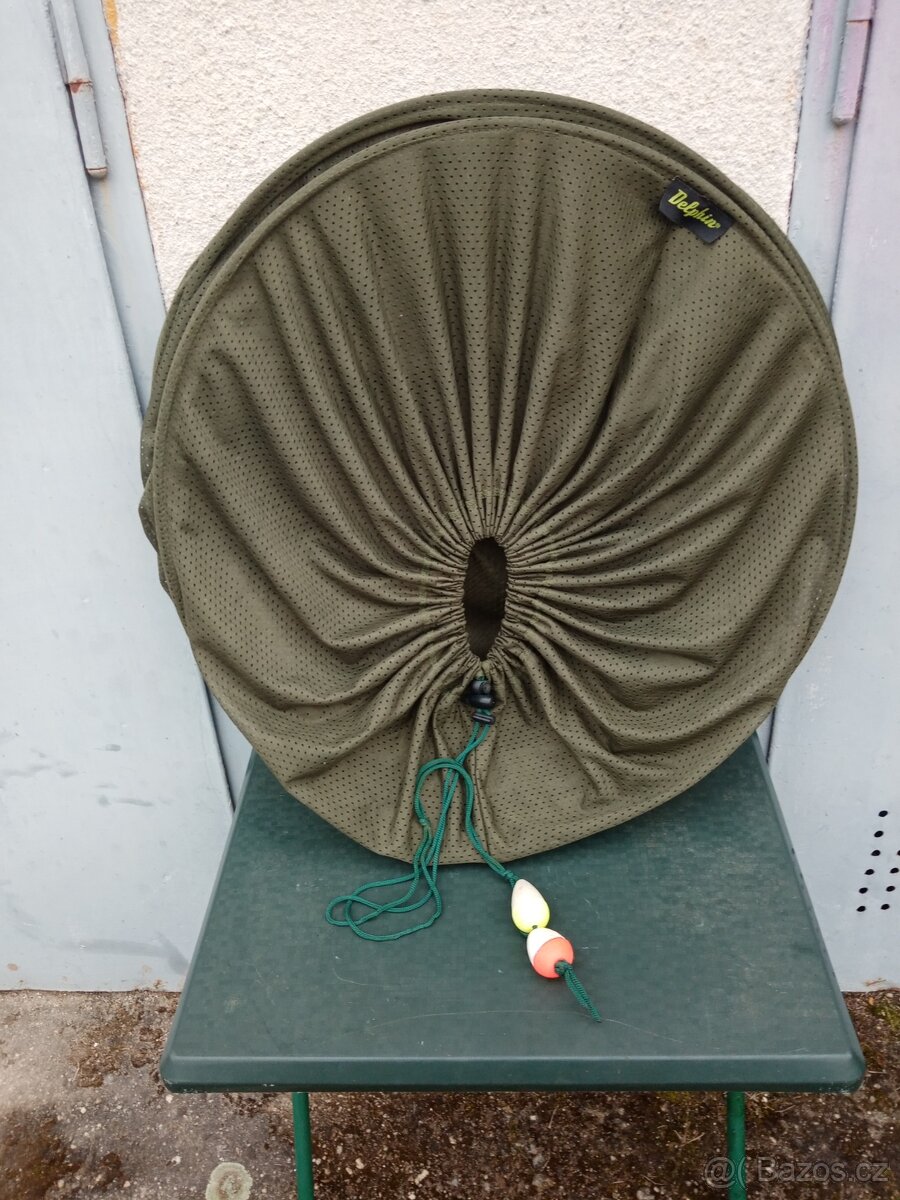Velký vezírek Delphin. Průměr 60cm.Délka 120cm.jemná síťka. Výhodou tohoto vezirku je že se nezachytávají ryby ploutvema do oček.Hodně prostorný.Přidám 2 kovové vidličky. PC 560kc. Stav jako nový. Osobní převzetí České Budějovice. Více po tel.