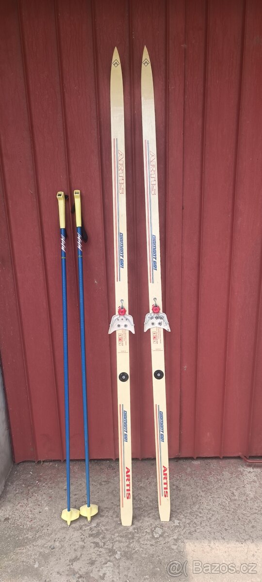 Staré běžky - [20.3. 2026]Staré běžky + hůlky, nalezeny ve sklepě, delka hůlek 47 cm, velikost běžek cca 170-180 cm, na požádání mohu ještě přeměřit.