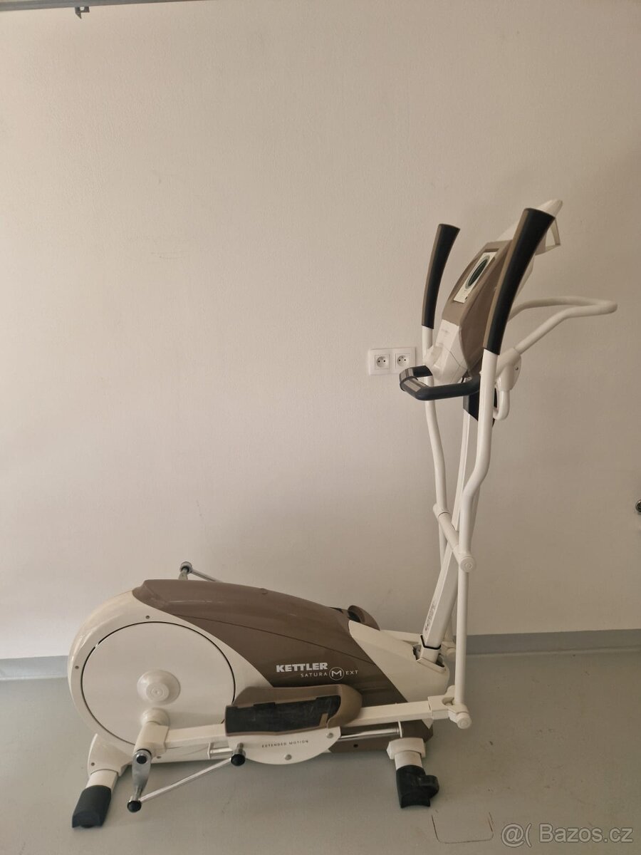 Kettler Sature E a Satura P - [17.4. 2026]Crossový trenažér KETTLER SATURA E a SATURA P. 100% funkční. Magnetický trenažér, 8 programů včetně HRC módu, 16 stupňů zátěže, 20 kg setrvačník, nosnost 150kg. Dlaňové senzory pro měření tepu. Magnetický brzdný systém ovládaný servomotorem. Držák n ...
