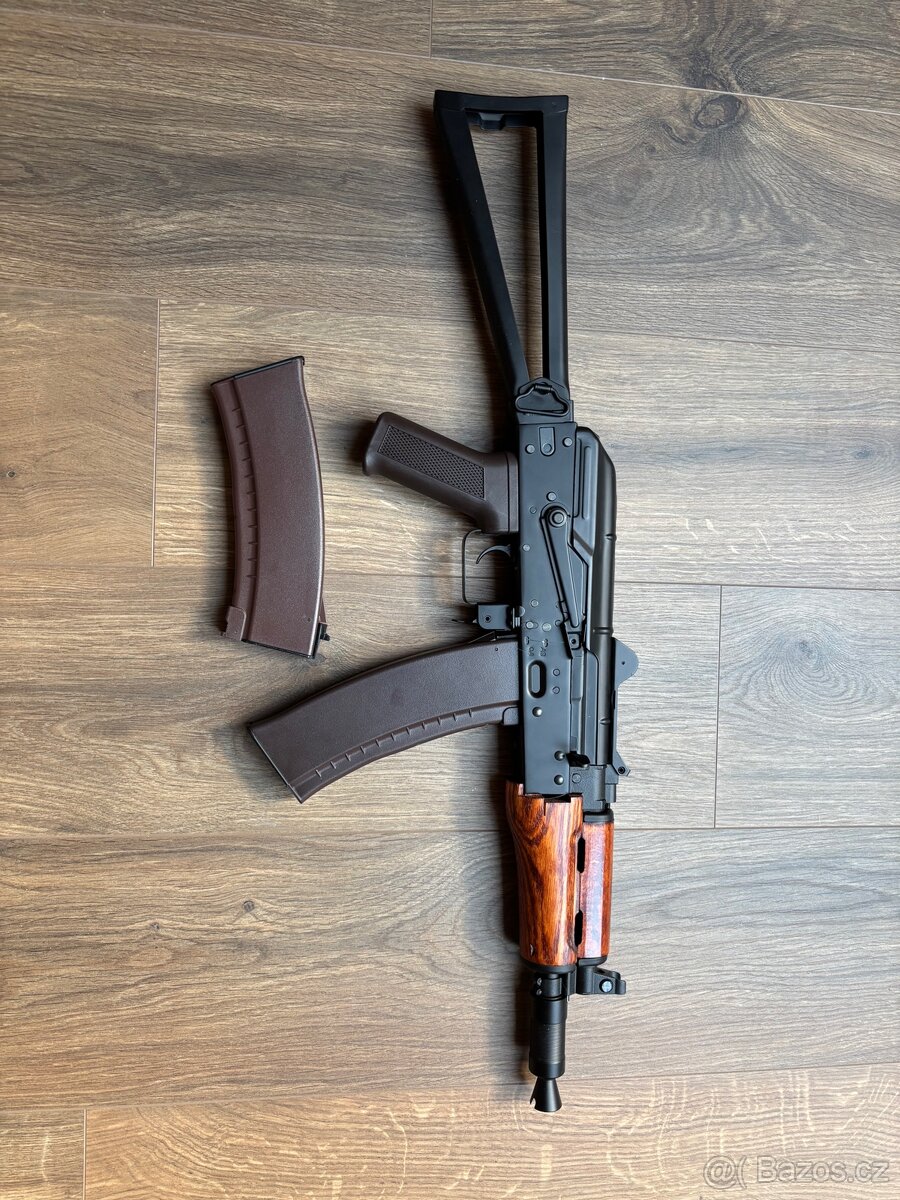 Prodám airsoftovou zbraň CYMA CM.045A (AKS-74U). Zbraň je ve stavu nového kusu, nikdy nebyla hraná, pouze vyzkoušená. Stále má originální záruční plombu. Plně funkční, bez jakýchkoliv problémů při střelbě. Součástí balení: 2x točný zásobník, mohu přidat i 1x tlačný