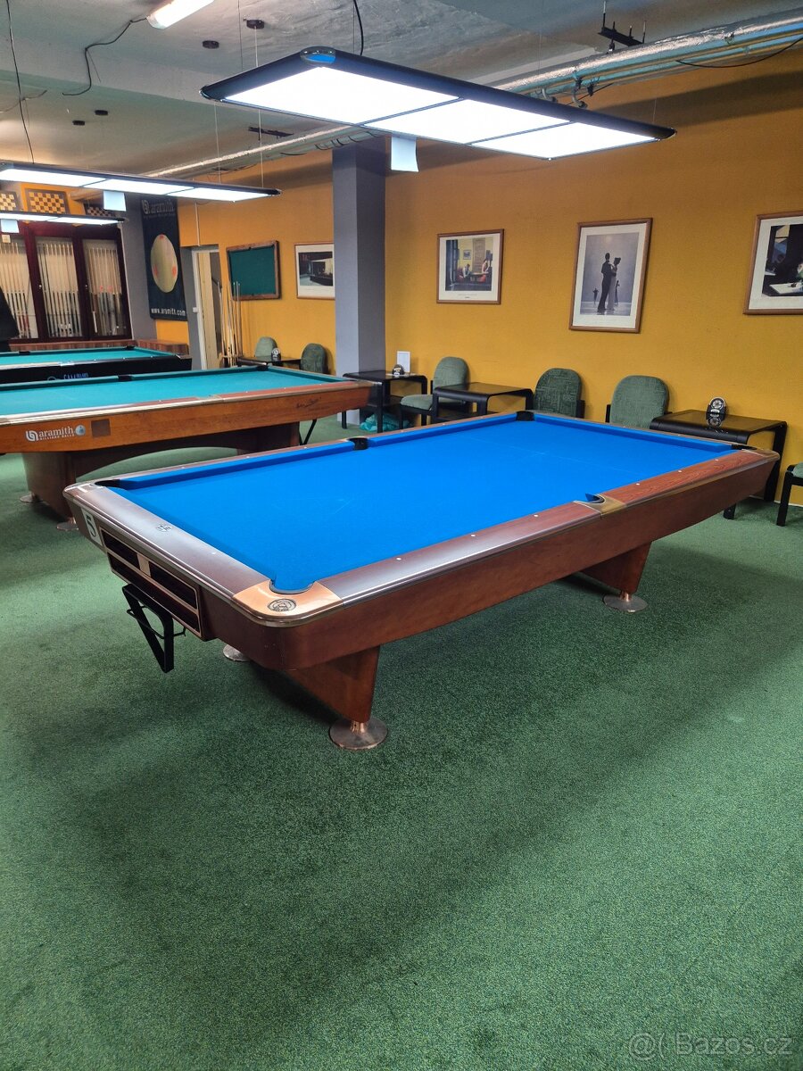 kulečník pool King 9ft - [18.4. 2026]Prodám tento závodní kulečník pool King 9ft ,deska Italská břidlice ze 3 dílů 24mm,kožené košíky,v ceně jsou i náhradní košíky v hodnotě 12tis. Kč. Lze dodat i nový tento stůl za 90tis. Kč