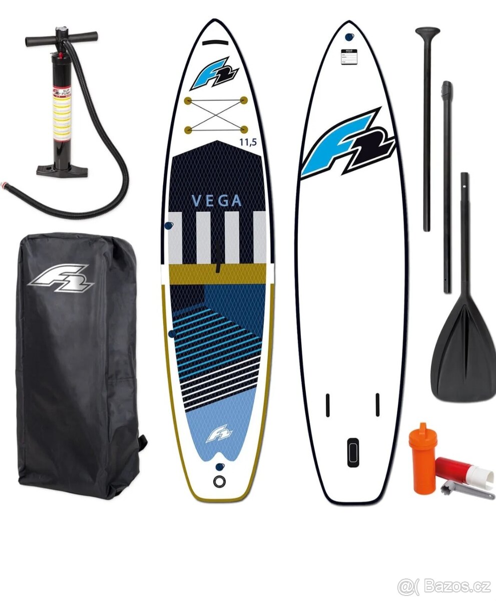 prodám zcela nový paddleboard F2 Vega 11.5 Model na rok 2023 Pracuji přímo ve firmě F2,tak poskytuji doklad se zárukou.Výtlak je 320 litrů a paddleboard je určen pro člověka s hmotností do 145 kg. Jde o 350 cm dlouhý, 82cm široký a vysoký 15cm nafukovací paddleboard (SUP), vyrobený dvouvrstvou technologií.