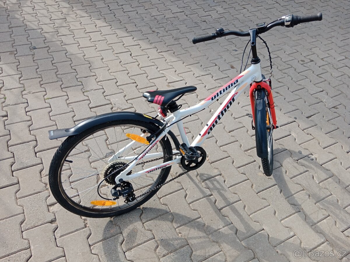 Dětské kolo Author A-Matrix, velikost 24" - [22.4. 2026]Prodám dětské kolo Author A-Matrix, velikost 24". Kolo je seřízeno. Velmi lehký hliníkový rám značkového výrobce, stojánek, držák na pití. Přehazovačka Shimano 3x7, pro děti od 120 až 140 cm, stav viz foto.