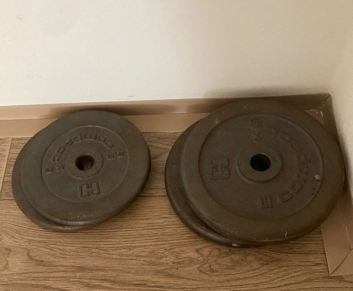Nakládací činka EZ 34,1kg - [21.4. 2026]Prodám nakládací činku - osa EZ 6,6kg, litinové kotouče 2x5kg, 6x2,5kg, 2x1,25kg, celkem s osou 34,1kg