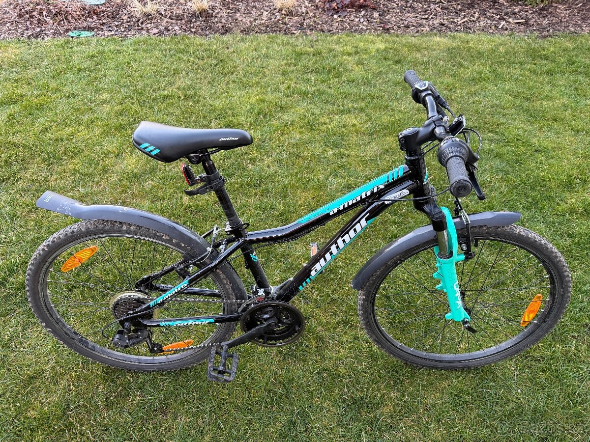 Dětské kolo Author A-Matrix, velikost 24" - [22.4. 2026]Prodám dětské kolo Author A-Matrix, velikost 24". Kolo je seřízeno. Velmi lehký hliníkový rám značkového výrobce, stojánek, držák na pití. Přehazovačka Shimano 3x7, pro děti od 120 až 140 cm, stav viz foto.