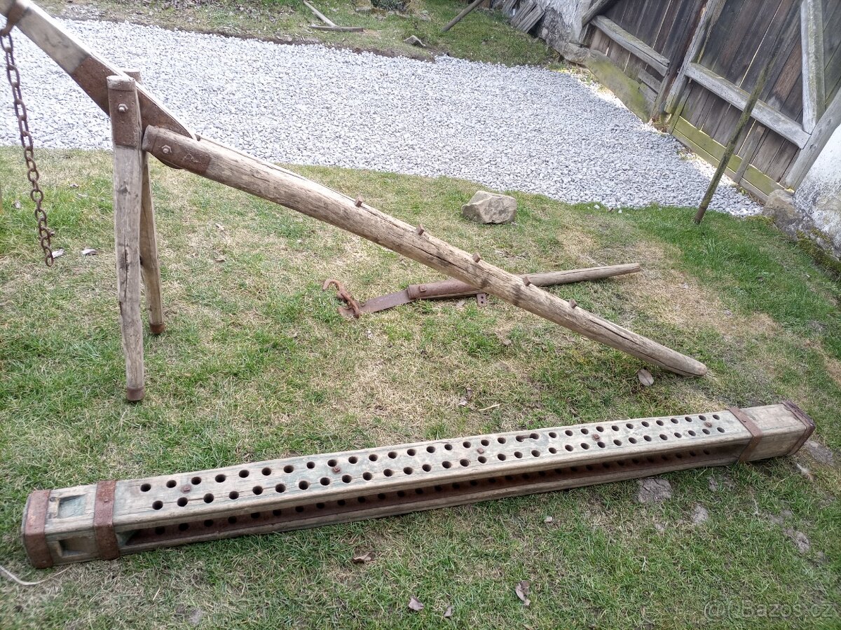 Prodám starý již historický ruční pákový zvedák na pokácené dlouhé dřevo, délka zvedáku 2,2 metru, - stáří více jak 70 let, dnes již rarita a unikát