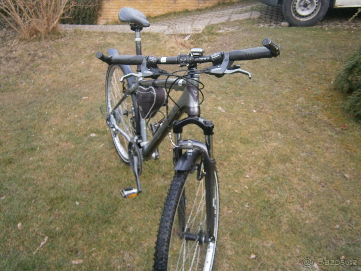 Hliníkový rám, váha asi 13kg. Jezdila jsem s ním jak silnice, tak polní cesty. Duše je proti propíchnutí. Na řídítkách nechávám ...
