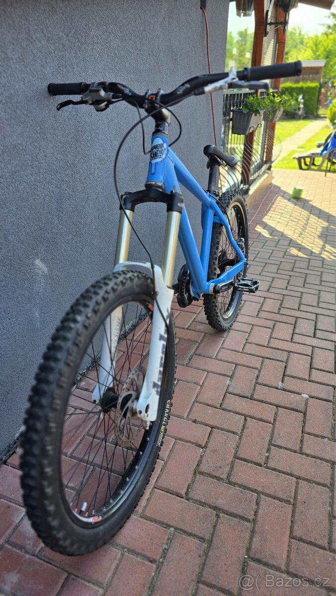 Prodám kolo s rámem Canbums vhodné na sjezdy, dirt, freeride apod…vidlice sr suntour durolux 36 180mm, přední brzdy - Avid Elixir 5 hydraulická, přehazovačka avid, řídítka atd. Noxon Dirty. Kolo bylo lakováno (původní barva bílá). Drobné kosmetické vady, v zadní části viz. foto bouchnutý rám (geometrie kola nedotčena) a přehazovačka potřebuje seřídit a vyměnit bowdeny + lanka. Kolo původně vyšlo na 30.000 ,- Kč.