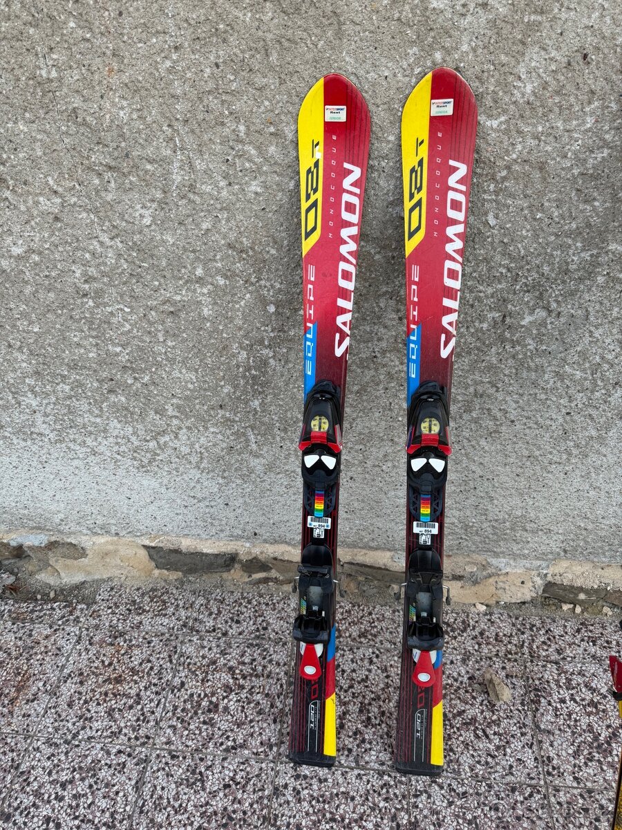 Prodám sjezdové lyže Salomon Equipe Jr s vázáním. Ideální pro začátečníky až mírně pokročilé lyžaře.