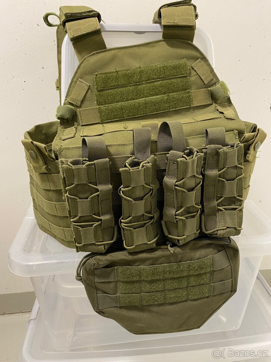 Prodám vestu od značky Gfc Tactical v barvě oliva. Se třemi sumkami na smg. K tomu přidám břišní sumku. Uvnitř vesty jsou ze stran suché zipy do kterých můžete dát třeba vysílačku. Posílám přes zásilkovnu