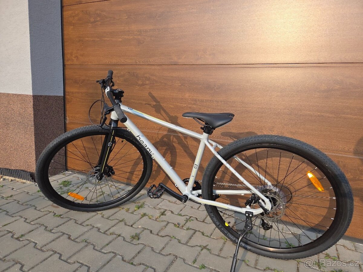 Beany zero 26” - [26.4. 2026]Nabízím Beany Zero 26”, stříbrno modré. Kolo kupované 07/2024. Ježděné párkrát. Dcera bohužel rychle vyrostla. Super stav. V ceně stojánek, blatníky, držák na lahev. Jedno z nejlehčích kol na trhu. Pouhých 8,3kg. Osobní odběr Neratovice/Libiš. V příp ...