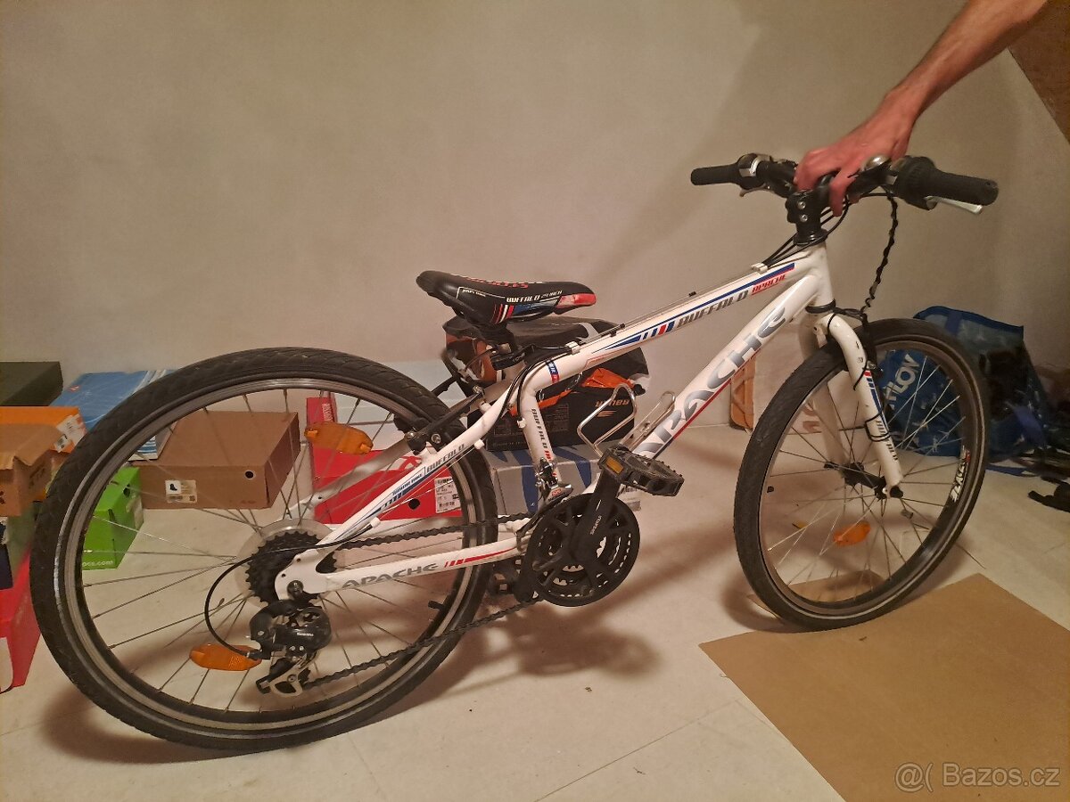 Prodám horské kolo Apache, bílé, 24 palců,s přehazovačkou. Top stav.
