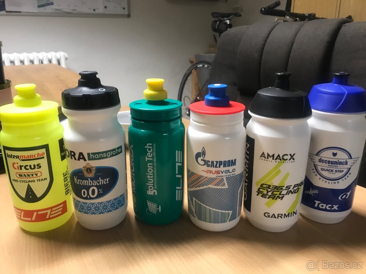 Prodám nové cyklistické bidony ze sbírky . Cena 60 Kč za kus. Q36.5 , Quick step, Bora, Intermarché, Gazpromu Bike exchange Jayco, Cofidis , Visma, Arkea….od Elite či Tacx