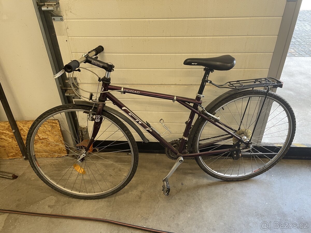 Trekové kolo GT Nomad 17" kola 28" - [16.4. 2026]Prodám velmi zachovalé, servisované kolo značky GT Nomad. ALU kostra 6061 Řazení pákové (palec ukazováček). Vybavení blatníky, tastička, zvonek, stojan, odpružená vidlice, sedátko aj. Převody 3x7 vybavení Shimano.