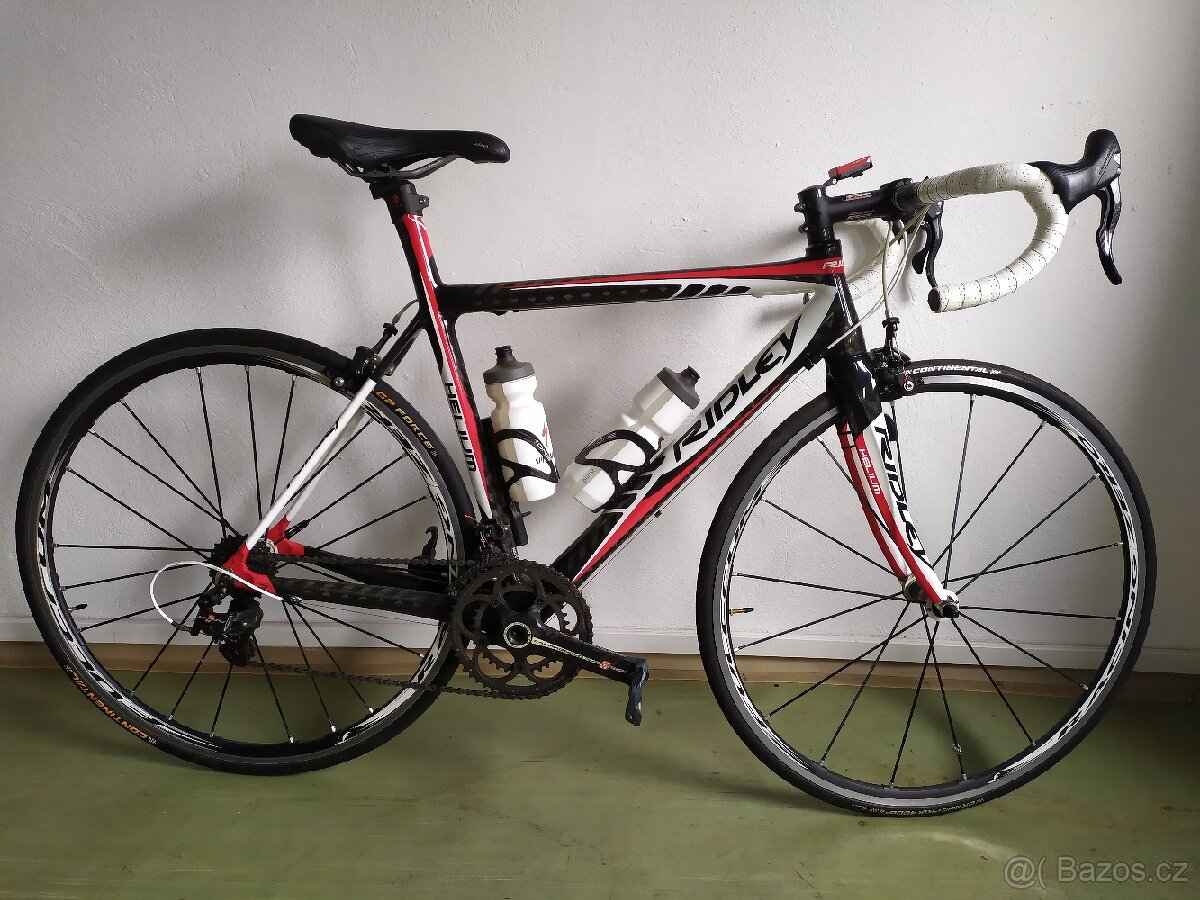 Prodám silniční kolo Ridley Helium. Na kole jezdila žena. Součástí prodeje jsou tretry Specialized velikosti 39.