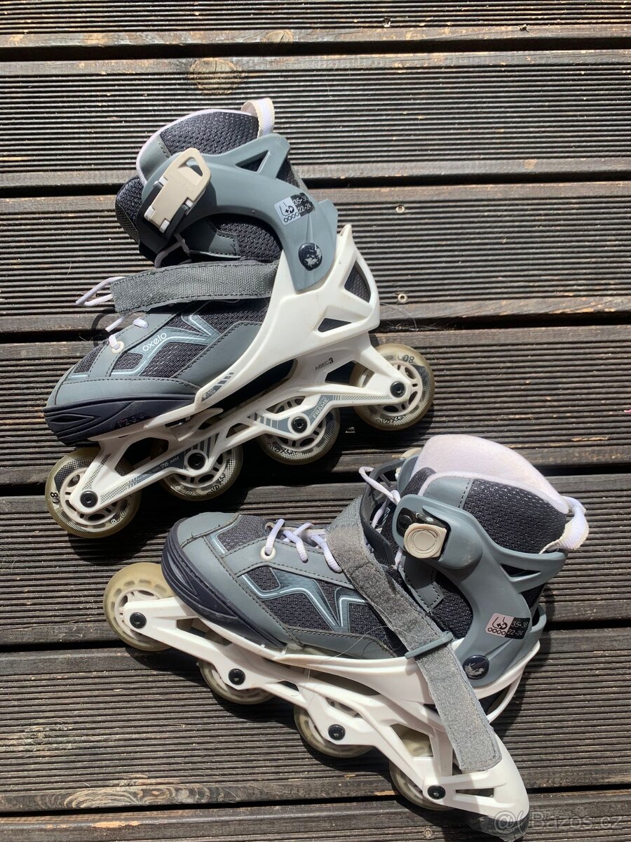 Prodám kolečkové brusle značky Oceli. Velikost 35-38. Jsou zvětšovací.Kolecka mají průměr 76 mm.