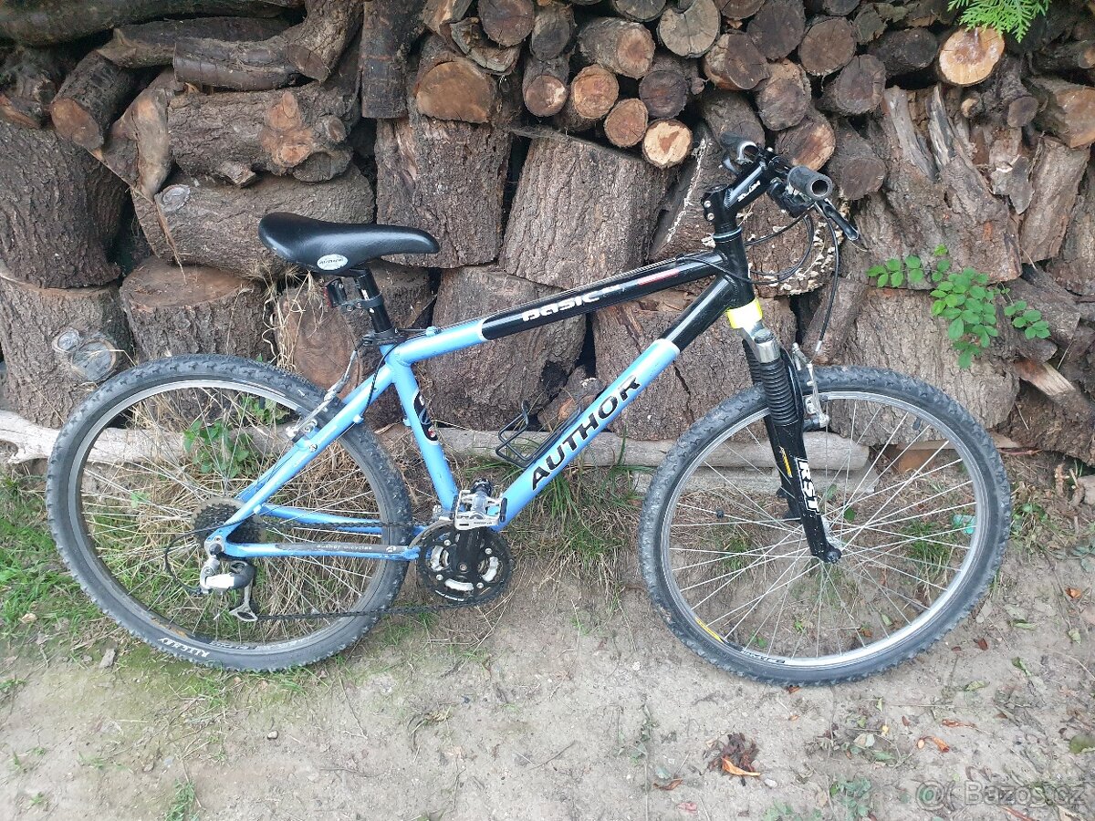 Author basic - [10.4. 2026]Prodám author basic, kolo vlastním 17 let takže nese známky používání, prodávám protože mam jiné, chtělo by trošku péče a ještě poslouží, 26” ráfky, pedály s nášlapy, 3x8 přehazovačka, zamykatelná vidlice, chtěla by seřídit přední přehazovačka, jinak ...