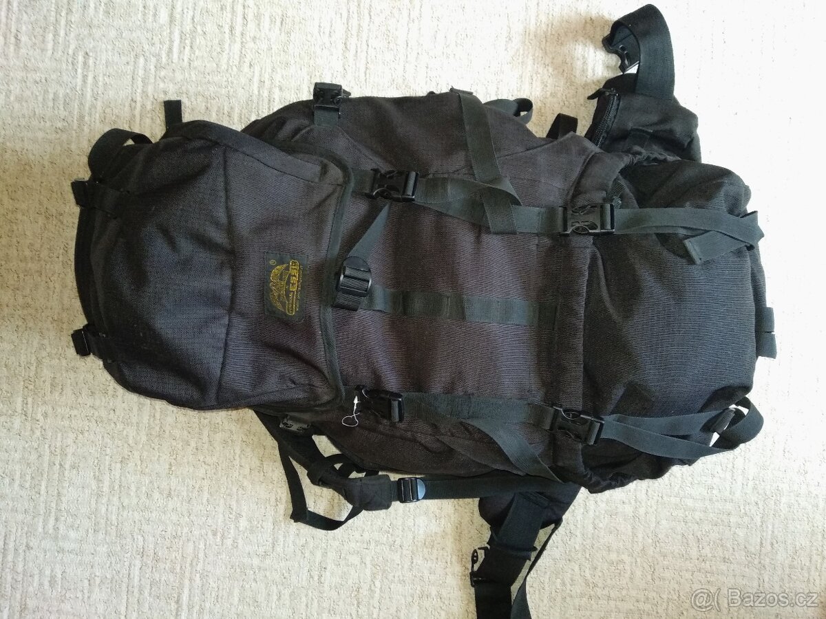 Krosna ESSL TREKKING LARGE 85L.Štelov., polstrov. záda + popruhy , upínací pásy , pláštěnka , kapsy - 1 přední , 2 horní 2 boční na zip + 2 malé , 1 na beder.pásu , barva černá.Super stav.PC - 3990Kč