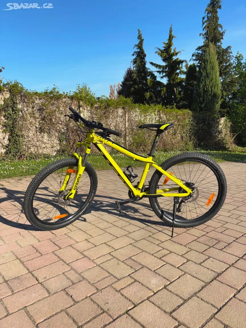 Horské kolo Scott Scale s odpruženou uzamykatelnou vidlicí Suntour XCM se zdvihem 110 mm. Tento model má hydraulicke kotoučové brzdy Shimano a o řazení se starají komponenty Shimano Altus (2 x 9.) Kolo bylo pravidelně servisováno-žádné velké vady jen malé škrábance ktere lze videt na fotkach.Na kole je navíc stojánek original Scott.Také je na kole navíc tachometr-měří:rychlost kmh,ujetou vzdalenost a cas.Na rámu je držák na pití.Kolo je vhodné pro začínající a pokročilé cyklisty.