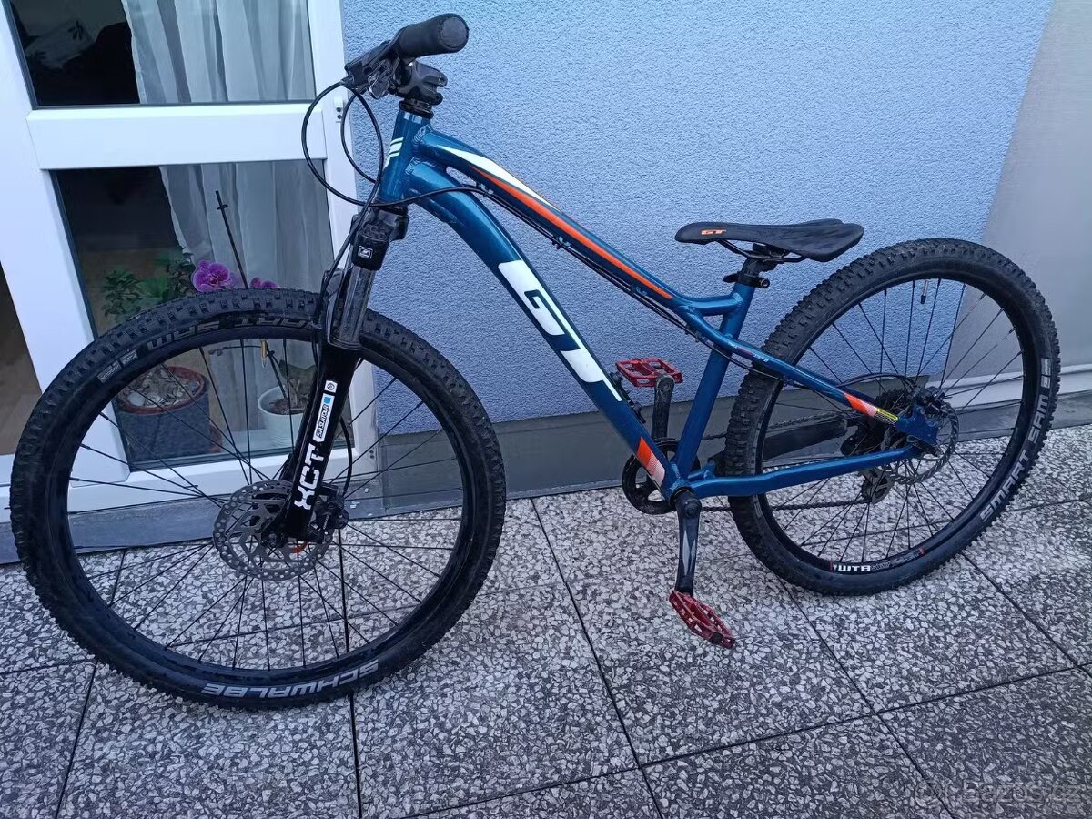 Dětské horské kolo GT Stomper ACE, pravidelně servisovane. Brzdy oproti originálu hydraulické, pedály vyměněné za pedály Dartmoor s piny. Nová vidlice Suntour XCT. Nové zadní kolo, stejně jako originál.
