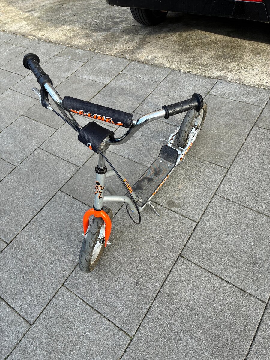 Dětská pohodlná kolobezka - [29.4. 2026]12", na dítě 100 - 130 cm, nosnost 50 kg, nafukovací kola, V bráně brzdy vpředu a vzadu, pohodlna