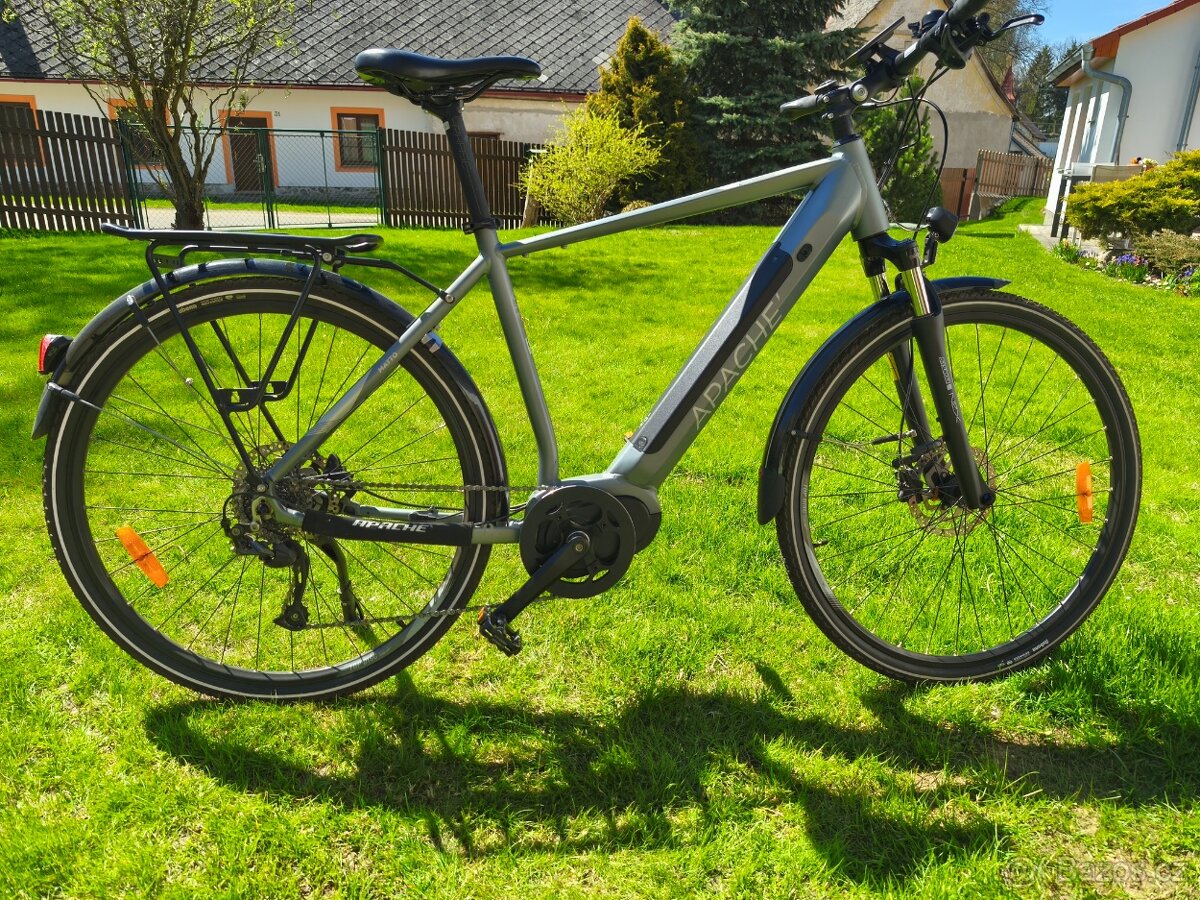 Prodám pánské elektrokolo Apache rám 21", baterie 576 Whod, motor Bafang, přehazovačka Shimano, najeto 13500 Km, dojezd cca 80 km, barva černošedá. Kolo je velmi zachovalé a má dobrý technický stav.